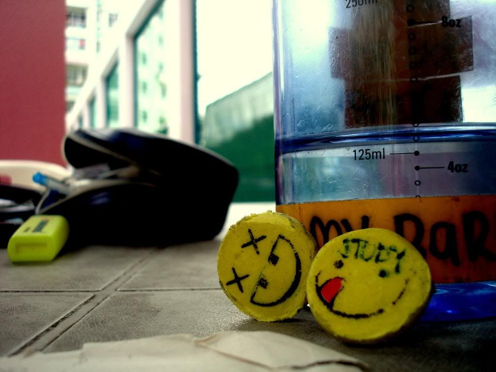 "Studied" by the poolside, he studied, I ended up stoning @ my english paper and taking random peeektures of my cheapo 10-cent erasers, heh :D